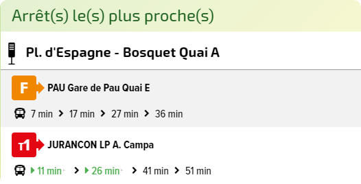 Horaires à l'arrêt le plus proche de votre position géolocalisée et à moins de 10min à pied (3 km/h).