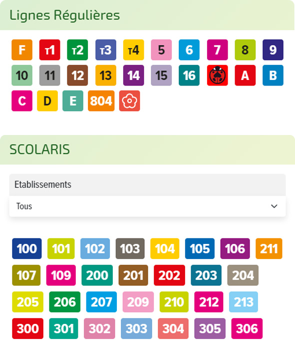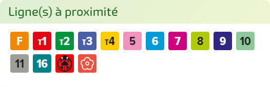Lignes à moins de 10min à pied (3 km/h) de votre position géolocalisée.